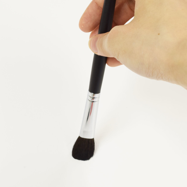 コシがあり優しい肌触りの馬毛。 長めの毛丈で程よい厚みがありまぶたにしっかりフィットします。 ブレンディングブラシとしても最適。